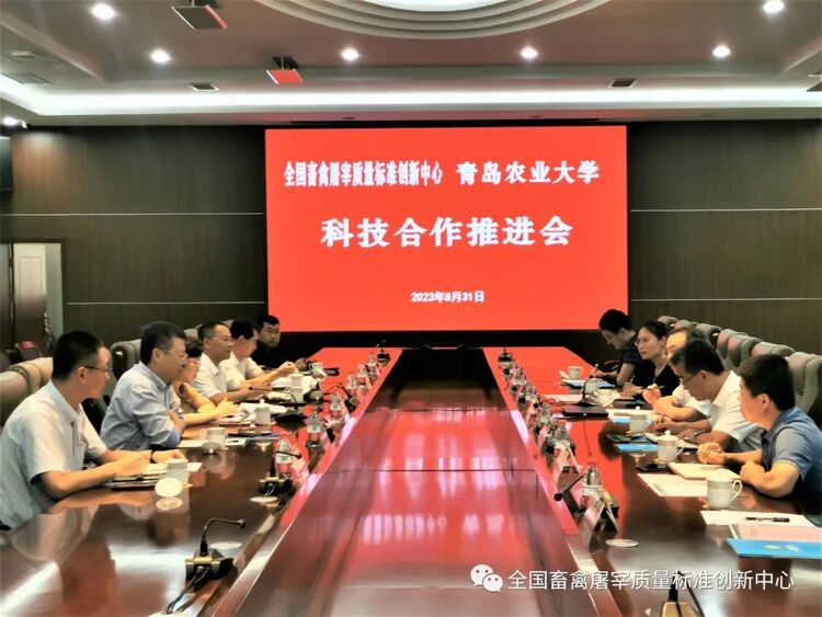 冯玉建简要介绍了创新中心基本情况,汇报了中心成立以来围绕养殖、屠宰加工、营销全产业链,在推进标准研发、验证评价、宣贯培训等方面开展的阶段性工作。同时推介了与青岛农业大学在产业研究院、实训基地建设方面的框架合作思路。