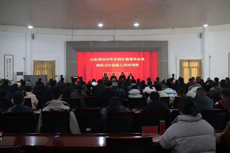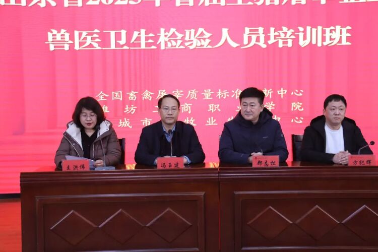 2月13-15日,全国畜禽屠宰质量标准创新中心联合潍坊工商职业学院共同举办的山东省2025年首届生猪屠宰企业兽医卫生检验人员培训班在诸城市开班,全国畜禽屠宰质量标准创新中心副主任(主持工作)冯玉建出席并致辞,潍坊工商职业学院执行校长、党委副书记郑志松出席。来自全省各地的120余名兽医卫生检验人员参加培训。