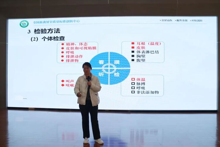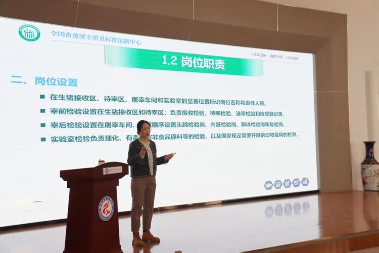 冯玉建在致辞中指出,兽医卫生检验人员是保障肉品质量安全的关键岗位,更是生猪屠宰GMP推进实施的中流砥柱,应当具有过硬的理论知识储备和实操技能水平。去年以来,在各级畜牧兽医主管部门的大力支持下,创新中心主动开展生猪屠宰GMP宣贯培训和技术指导服务,为省内近40家生猪屠宰企业提供了精准问题解决方案。去年年底省畜牧兽医局将创新中心作为全省兽医卫生检验人员培训试点机构。