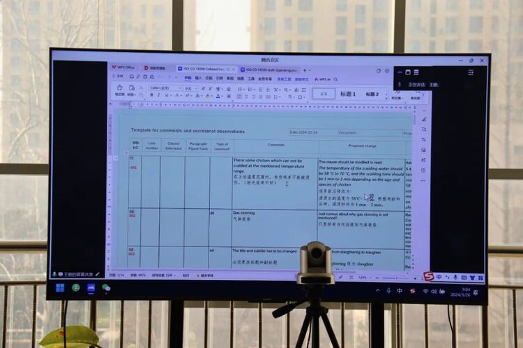 3月26日上午,全国畜禽屠宰质量标准创新中心组织专家召开ISO国际标准《鸡屠宰操作规程》委员会草案(CD)反馈意见讨论会。会议通过视频形式召开。
