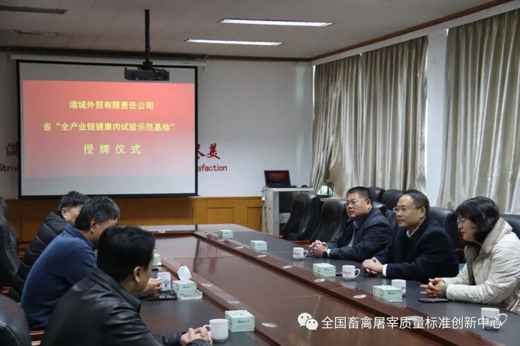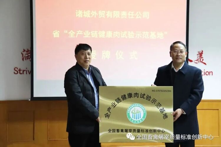 12月19日上午,“全产业链健康肉试验示范基地”授牌仪式在诸城外贸公司隆重举行,全国畜禽屠宰质量标准创新中心党总支副书记、副主任冯玉建,诸城外贸公司相关负责人参加授牌仪式。
