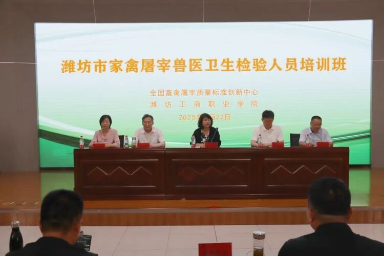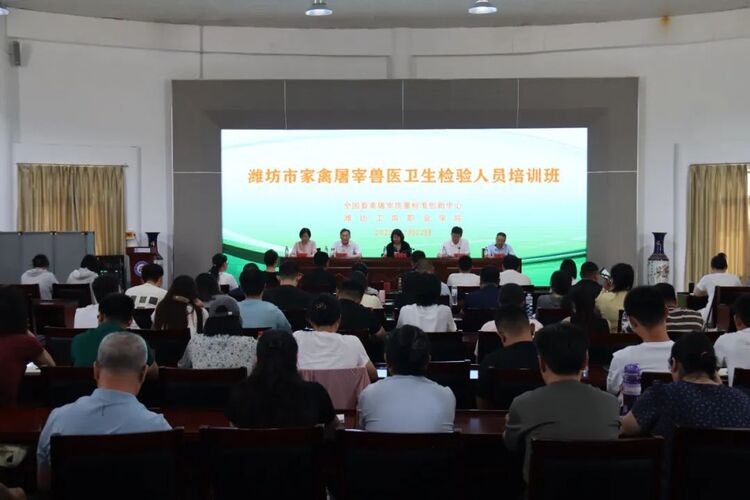 7月22号,由全国畜禽屠宰质量标准创新中心与潍坊工商职业学院联合主办的潍坊市家禽屠宰兽医卫生检验人员培训班在我市开班。全国畜禽屠宰质量标准创新中心党组成员王洪伟,山东畜牧兽医职业学院动物医学院院长李汝春,潍坊工商职业学院执行校长、党委副书记郑志松出席会议。
